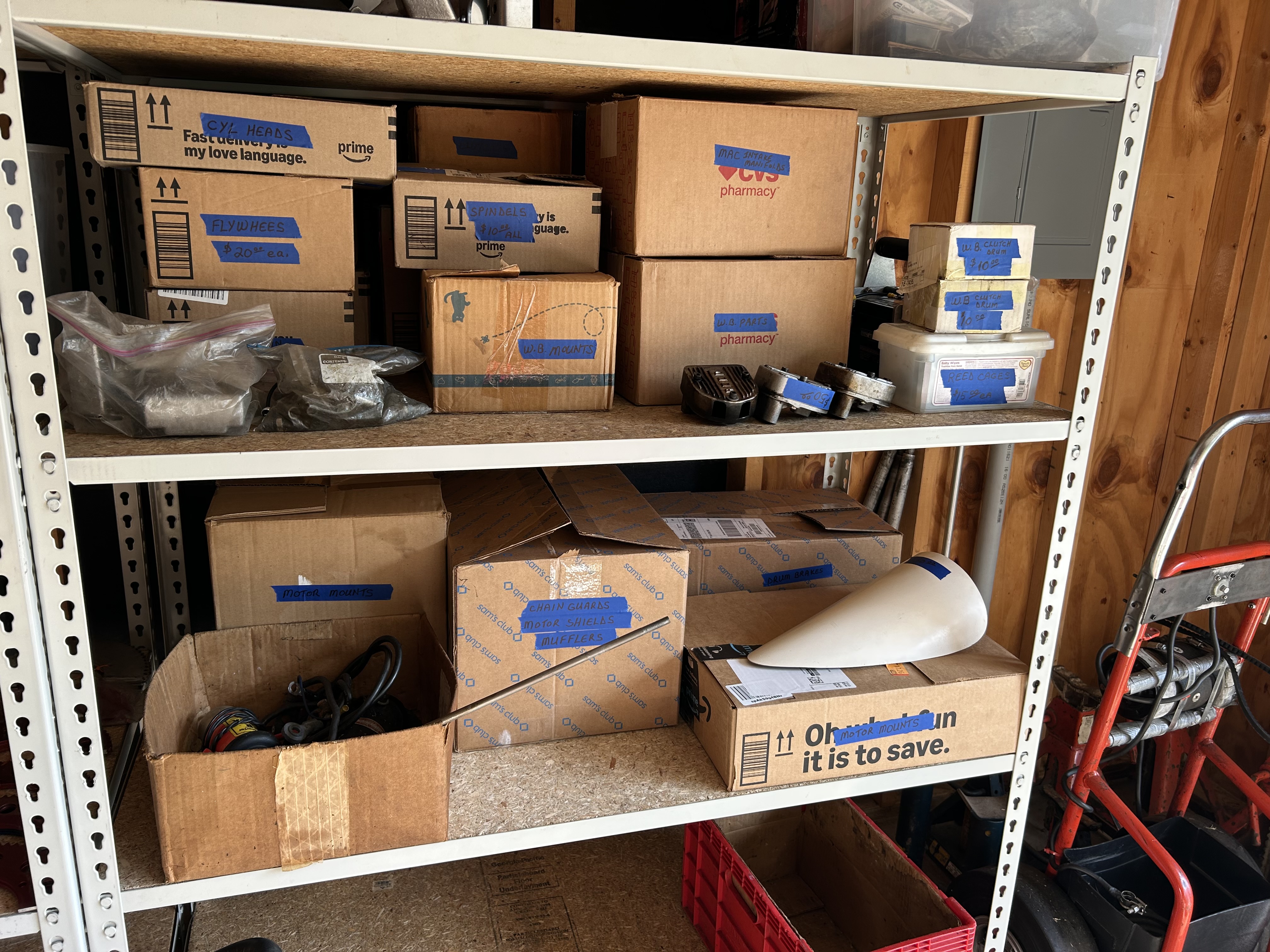 We’re bringing a trailer full of parts and karts to The Big One in a couple weeks. Complete Fox karts ready to run and boxes of vintage parts. McCulloch 49 engines, some converted saw motors, Mac9, Mac75, good sets of Fox LeMans wheels with new tires, intakes, carbs, starters, a stand and a lot more! See you there!